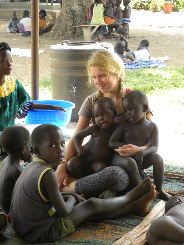 All of the pictures you see here, are pictures my friends and I have taken during our time at Smile Africa. In this picture above, you see that this young girl (4years old) is taking care of her baby sister. Even though they are at the orphanage, they still are responsible for their younger siblings. They bathe them, feed them, and watch over them. You may also see that the baby has a waist band on. We were all curious as to why the young girls wear these around their hips, and we asked one of the African men at the church why it was. He explained to us that is it “culture” for young girls to do this, as early as birth! They use the waist band to keep their waists smaller because AND I QUOTE “the men like it that way”.